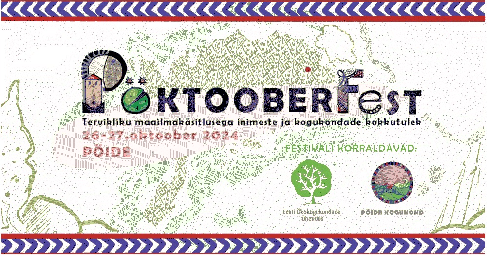 “Pöktooberfest2024 ehk tervikliku maailmakäsitlusega inimeste ja kogukondade kokkutulek, mille fookuses on haridus, loodust ja inimesi ühendava maailmavaatega inimeste kokkusaamine, Pöide kogukonnaga tutvumine, inspireeriv kontsert, Eesti ökokogukondliku liikumise tulevikusuundade ja elavamaks muutumise arutelu ja palju muud.” – nõnna lubavad tegijad ise ja Tasaarengu Eesti elab sellele ettevõtmisele tulihingeliselt kaasa, nii kohapeal kui ka kaugelt. Kes soovib tasaarenguliku kogukonnaelu maiku suhu, saab veel jala ukse vahele – praamigraafik on sel liinil õnneks tihe.