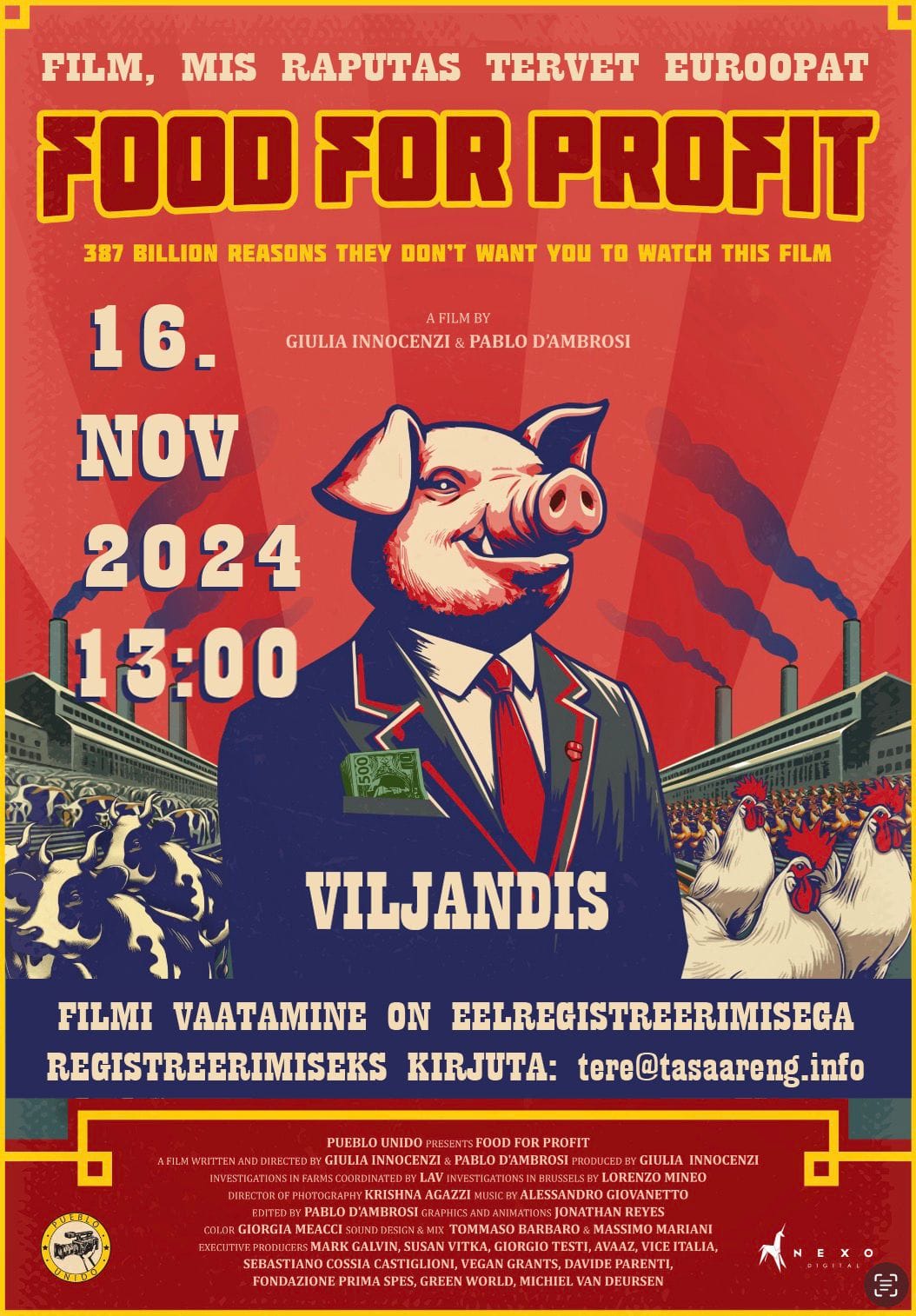 16. novembril toimus hall-tuulises Viljandis Seasaare teatris (mis muide asub vanas tuletõrjemajas) järjekorras teine tasaarengu filmiõhtu. Asukoha nimi oli märgiline, nagu näha ka Lauri suurepärase postri päält, sest sellekordne “Food for Profit” rääkis justnimelt lihatööstusest.