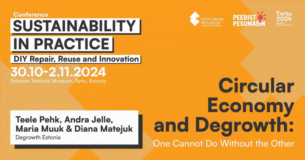 Võtke nüüd oma kalendrid välja ja vedage pliiatsiga rasvane ring ümber kuupäevadele: 30. oktoober - 2.november . Toimub jätkusuutlike praktikate konverents “JÄTKUSUUTLIKKUS PRAKTIKAS: ISETEGEMINE, PARANDAMINE, TAASKASUTUS JA INNOVATSIOON”. Asukoht: Eesti Rahva Muuseum, Tartu. Link kommentaaris. Pika nime taga peitub lihtne tõdemus: käed külge! Ise parandades, tehes ja leiutades loome maailma, kus kehtivad ökoloogilise jätkusuutlikkuse reeglid… Continue reading Tasaareng jõuab konverentsile