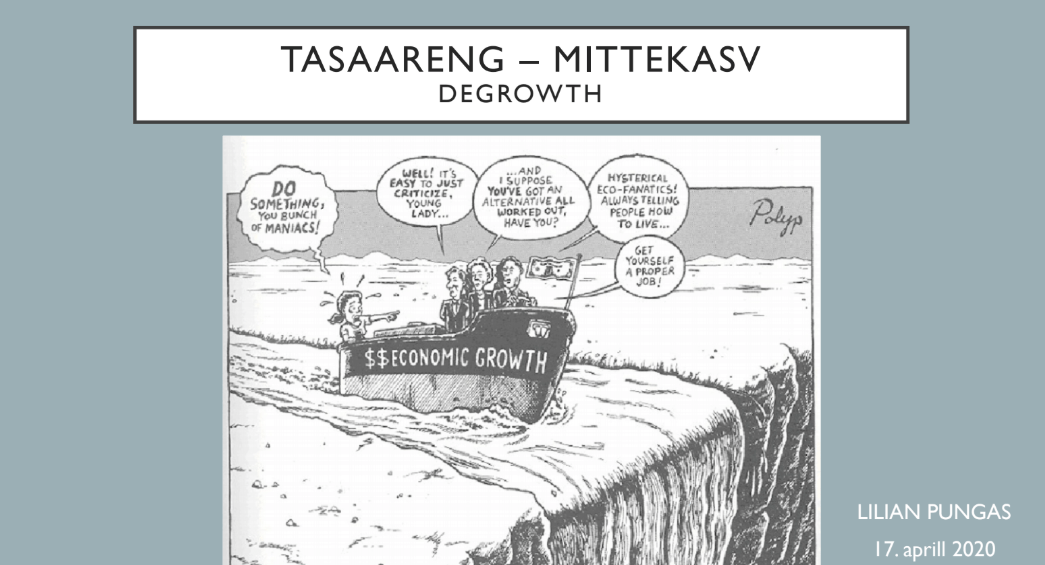 2023. aasta kevadsemestril alustab Tartu Ülikoolis magistri- ja doktoriastmele mõeldud vabaaine SVSV.00.010 Jätkusuutlikkus ja tasaareng (6 EAP), mis tutvustab tasaarengu mõttevoolu ja ühiskonnakorraldust teoreetiliste ja praktiliste teadmiste kaudu ning annab oskused selle teemaliste arutelude juhtimiseks. Aine Jätkusuutlikkus ja tasaareng (SVSV.00.010) pakub mõtteainet kõigile, kes pistavad rinda kliimamuutuste, rahvusvaheliste suhete, keskkonnakaitse, filosoofia, majandusteaduste, tehnoloogilise innovatsiooni või muutuste juhtimisega ühiskonnas. Loengutes… Continue reading Tulemas on õppeaine “Jätkusuutlikkus ja tasaareng”