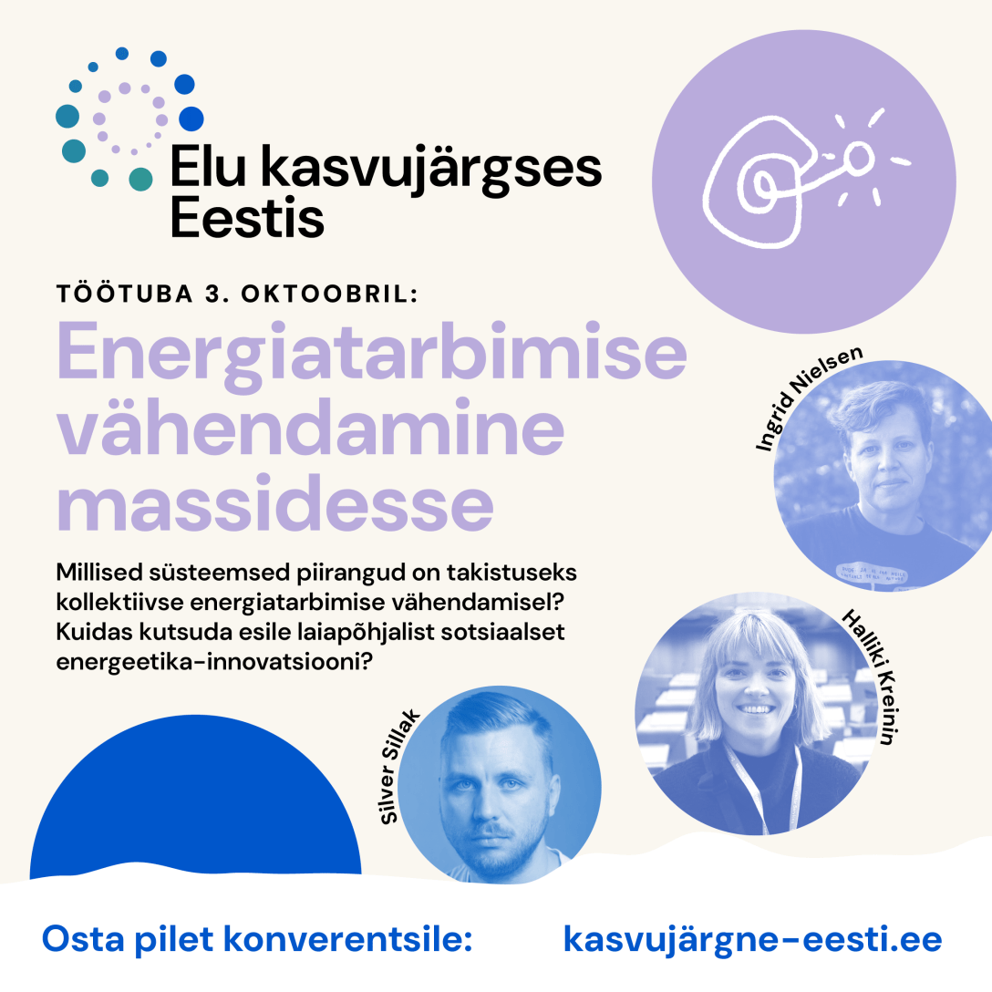 2.-.3. oktoobril Aegviidus, Nelijärve puhkekeskuses aset leidval konverentsil “Elu kasvujärgses Eestis” toimub nii mõndagi põnevat. Seekord tutvustame teile 3.oktoobri töötuba “Energiatarbimise vähendamine massidesse” Nagu teame, on inimkonna kasvaval energiatarbimisel tohutu jälg ja eksponentsiaalselt ei saa see igavesti kasvada, sest planetaarsed piirid on juba praegu ees. Seega peame ühiskonnana liikuma selles suunas, et kasutada energiat efektiivsemalt… Continue reading Konverentsi töötuba “Energiatarbimise vähendamine massidesse”