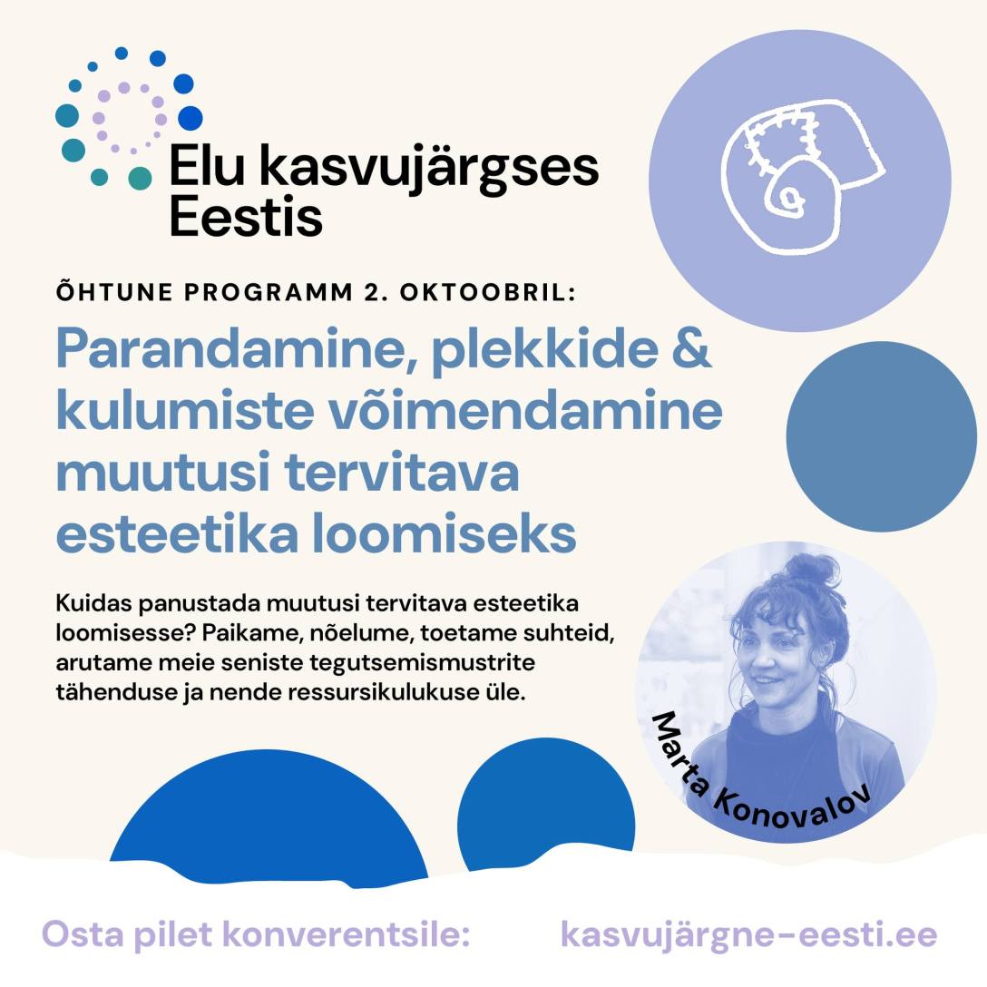 Lisaks konverentsi sessioonidele toimub 2.-.3. oktoobril Aegviidus, Nelijärve puhkekeskuses aset leidval konverentsil “Elu kasvujärgses Eestis” kahe päeva jooksul ka mitmeid töötubasid.Selleks, et esimese päeva õhtul meel ärksana püsiks, toimub õhtusel ajal veel kaks töötuba, teine neist kannab nime "Parandamine ning plekkide ja kulumiste võimendamine muutusi tervitava esteetika loomiseks"Töötoa eesmärgiks on lihtsate töövõtete abil toetada suhteid.… Continue reading Konverentsi töötuba parandamisest ja isetegemisest